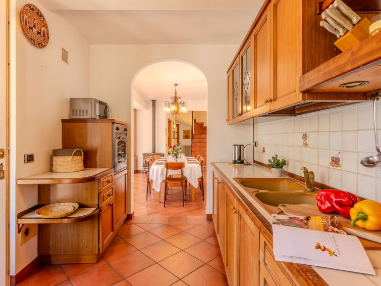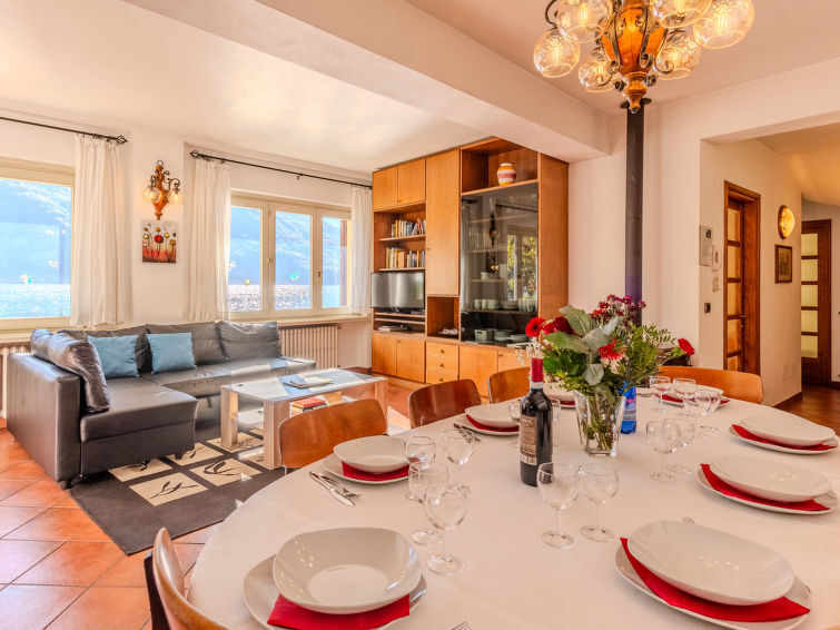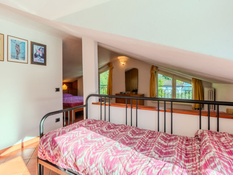 Maison jumelée 4 pièces 150 m2 sur 3 niveaux. Spacieux et clair, partiellement mansardée, aménagement agréable et de bon goût: séjour/salle à manger avec cheminée (uniquement à titre de décoration), table pour les repas et TV (satellite) (écran plat). Sortie sur le jardin, sur la terrasse. 1 chambre double. Cuisine ouverte (four, lave-vaisselle, Poêle à gaz, 4 feux, grille-pain, bouilloire électrique, micro-ondes, congélateur). Bain/bidet/WC. À l'étage supérieur: 1 chambre double. Sortie sur le balcon. 2ème étage: Studio mansardé avec 2 lits, 1 lit double et table pour les repas. Douche/bidet/WC. Chauffage au gaz. Possibilité de chauffage uniquement du 15.10. au 15.04. Sol en pierres naturelles. Balcon, grande terrasse couverte, jardin. Meubles de terrasse, mobilier de balcon, chaises longues (4). Superbe vue panoramique sur le lac et les montagnes. A disposition: lave-linge, fer à repasser, chaise haute pour enfant, lit bébé jusqu'à 2 ans. Internet (Connexion WIFI, gratuit). Veuillez noter: maison non-fumeur. IT013189C2MAFXHAB5