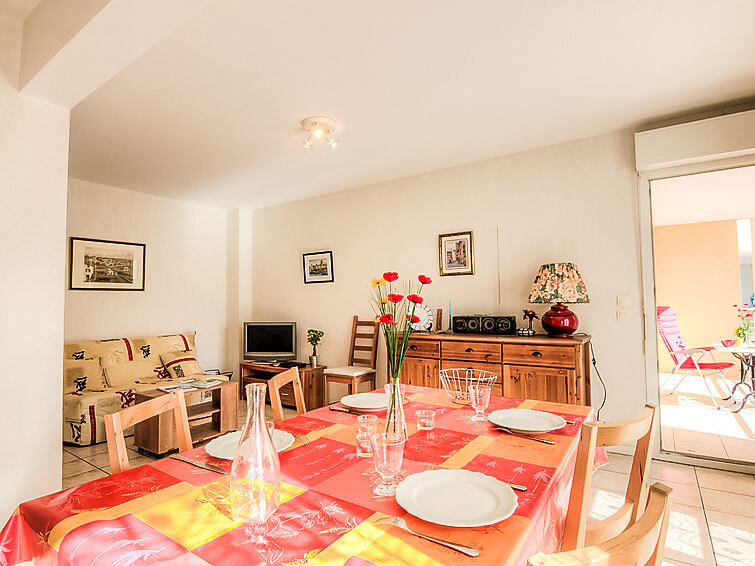 Appartement 2-kamers 49 m2 op de 1e verdieping. Mooi ingericht: woon-/eetkamer met 1 2-pers divanbed (140 cm), TV en radio. Uitgang naar het terras. 1 kamer met 1 2-pers bed (1 x 140 cm). Open keuken (oven, afwasmachine, 2 keramische glas kookplaten, 2 inductiekookplaten, magnetron, elektrische koffiemachine). Badkamer, aparte WC. Elektrische verwarming. Terras 9 m2. Terrasmeubelen. Ter beschikking: wasmachine. Internet (Internet (WiFi), extra). Parkeerplaats nr. 32. Rookmelders.