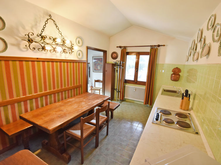 Appartement 3-kamers 70 m2 op de 4e verdieping. Afgeschuinde daken, eenvoudig en doelmatig ingericht: open woon-/eetkamer met 1 2-pers divanbed en TV (Flatscreen TV). 1 2-pers. kamer met afgeschuinde daken. 1 kamer met afgeschuinde daken met dakraam met 2 bedden. Groot, open keuken (4-pits kookplaat, afwasmachine, magnetron) met eettafel. Douche/bidet/WC. Uitzicht op de bergen. Ter beschikking: wasmachine, haardroger. Geschikt voor families. Koelkast zonder vriesvak, niet rokers woning. Maximaal 1 huisdier/hond toegestaan. Brandblusser. IT022039C2NZ2NXE55
