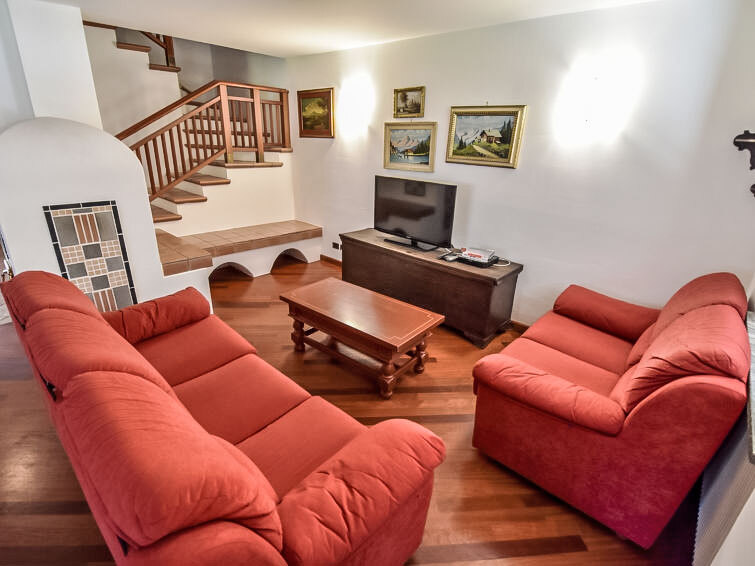 Halfvrijstaand huis 5-kamers 150 m2 op 3 verdiepingen. Ruim, comfortabel en mooi ingericht: hal met aparte WC en TV (Flatscreen TV). Groot woon-/eetkamer. Woonkeuken (oven, afwasmachine, diepvriezer) met bar. Souterrain: 1 kamer met 2 bedden. Bovenverdieping: 1 2-pers. kamer met afgeschuinde daken met douche/bidet/WC. Uitgang naar het balkon. 1 kamer met afgeschuinde daken met 2 bedden. Uitgang naar het balkon. 1 kamer met 1 x 2 stapelbedden. Uitgang naar het balkon. Douche/bidet/WC. Zeer mooi uitzicht op de bergen. Ter beschikking: wasmachine. Internet (Internet (WiFi), gratis). Parkeerplaats (2 Auto's). Maximaal 1 huisdier/hond toegestaan. Brandblusser. IT022039B4MA9453LE