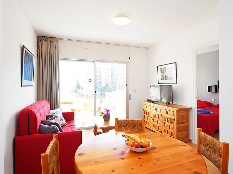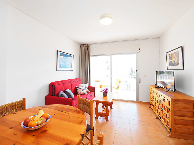 Appartement 2-kamers 50 m2 op de 1e verdieping. Eenvoudig ingericht: woon-/eetkamer met Sat-TV. Uitgang naar het terras. 1 kamer met 2 bedden (90 cm), ventilator. Open keuken (4 keramische glas kookplaten, broodrooster, magnetron, diepvriezer, elektrische koffiemachine). Bad/WC. Geen verwarmingsmogelijkheid. Terras 32 m2. Terrasmeubelen. Ter beschikking: wasmachine. Internet (WiFi, gratis). TV alleen ES, FR. De slaapkamerventilator is een plafondventilator. Er zit geen blinde vlek op het raam van de eetkamer. HUTG008495