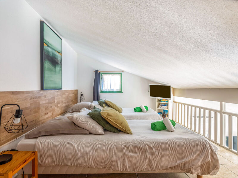 "Val d'Alpilles", huis in een rij 3-kamers 40 m2 op 2 verdiepingen. Doelmatig en mooi ingericht: woon-/eetkamer met eettafel, TV, elektrische verwarming en air-conditioning. Uitgang naar het terras, naar de zitplaats in de tuin. 1 kleine kamer met 1 2-pers bed (1 x 140 cm, lengte 200 cm). Kookhoek (mini-oven, oven, afwasmachine, 2 keramische glas kookplaten, broodrooster, waterkoker, diepvriezer, elektrische koffiemachine). Douche/WC. Elektrische verwarming. Bovenverdieping: 1 open kamer met afgeschuinde daken met gordijn met 2 bedden (90 cm, lengte 200 cm), TV en Flatscreen TV. Terras 15 m2. Terrasmeubelen, elektrische barbecue. Ter beschikking: wasmachine. Internet (Internet (WiFi), gratis). Parkeerplaats nr. 103 (1 Auto) op 50 m. Rookvrij huis. Rookmelders. Aanbod door een particulier volgens art. 155, IV van CGI. 130580000869P