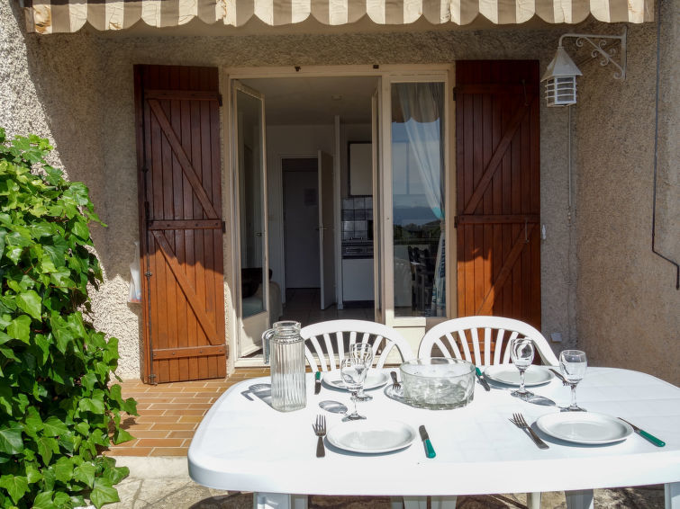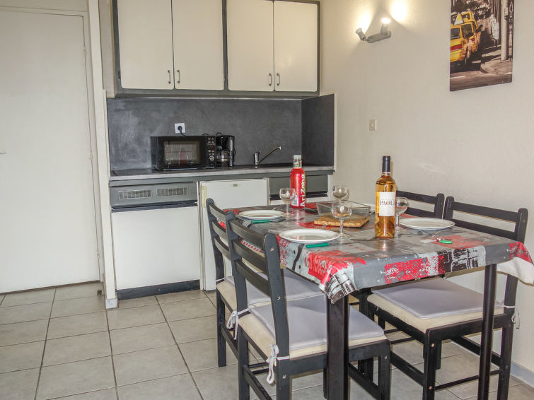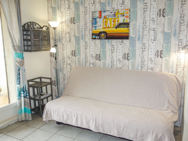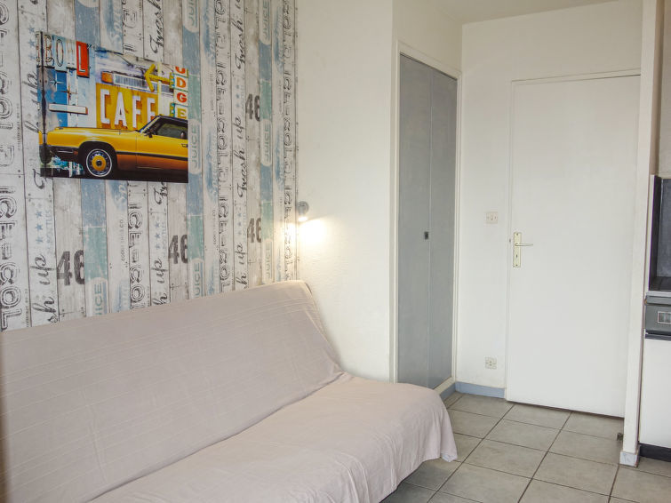 Appartement 1-kamer 22 m2, op verhoogde begane grond. Doelmatig en comfortabel ingericht: hal, zonder ramen met 1 x 2 stapelbedden (80 cm, lengte 190 cm). Woon-/eetkamer met 1 2-pers divanbed (140 cm, lengte 190 cm), TV. Uitgang naar het terras. Kookhoek (2 keramische glas kookplaten, waterkoker, magnetron, diepvriezer, elektrische koffiemachine). Douche/WC. Elektrische verwarming. Terras 15 m2 gedeeltelijk overdekt, op het zuidwesten gelegen. Terrasmeubelen. Uitzicht op zee. Ter beschikking: wasmachine. Internet (Internet (WiFi), extra). Parkeerplaats nr. 935. TV alleen FR. Rookmelders. Opgelet: toegang tot het appartementenhuis, bereikbaar via trappen. 83112 000252 1X