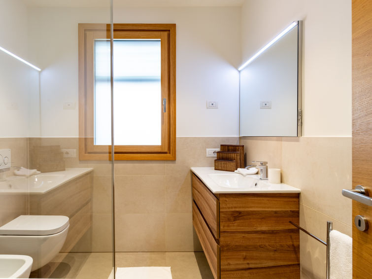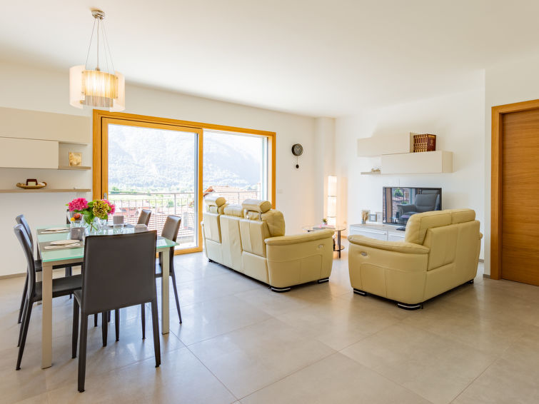 Appartement 4-kamers 100 m2 op de 1e verdieping. Ruim en licht, comfortabel en mooi ingericht: open woon-/eetkamer met eettafel en Sat-TV (Flatscreen TV). Uitgang naar het balkon. 1 2-pers. kamer met douche/bidet/WC. Uitgang naar het balkon. 1 kamer met 2 bedden. 1 kamer met 1 bed. Keuken (oven, afwasmachine, 4 inductiekookplaten, broodrooster, waterkoker, magnetron, diepvriezer, elektrische koffiemachine, pads voor de koffiemachine (Nespresso)). Douche/bidet/WC. Air-conditioning, vloerverwarming. Solarstroom. Natuurstenen vloeren. Balkon. Balkonmeubilair. Mooi uitzicht op het meer, de bergen en de plaats. Ter beschikking: wasmachine, droger, kinderstoel, kinderbed tot 2 jaar. Internet (Internet (WiFi), gratis). Niet rokers woning. Privé ingang. IT013189C24KNZLR9L