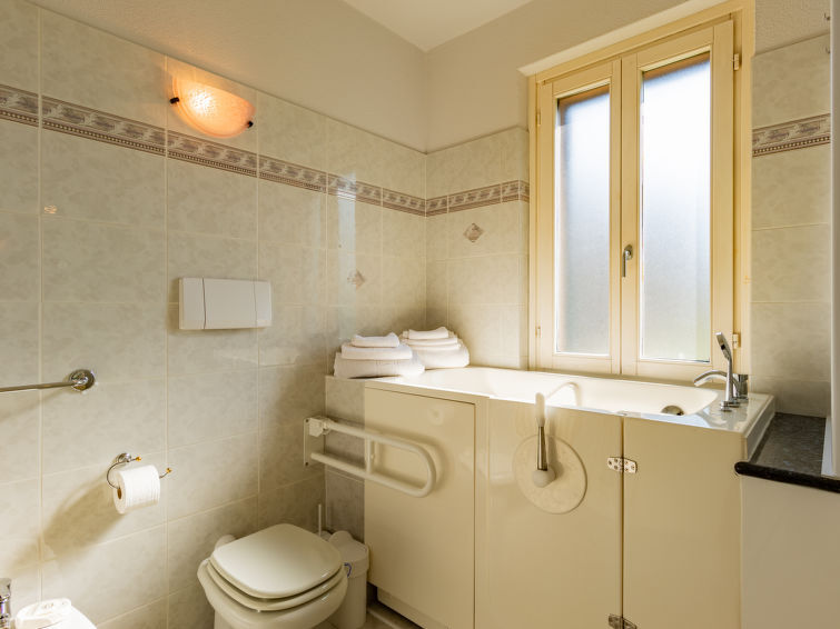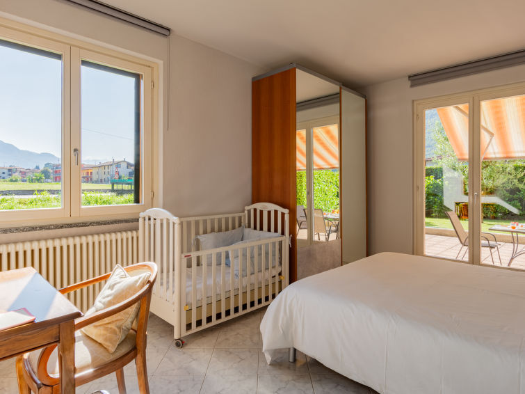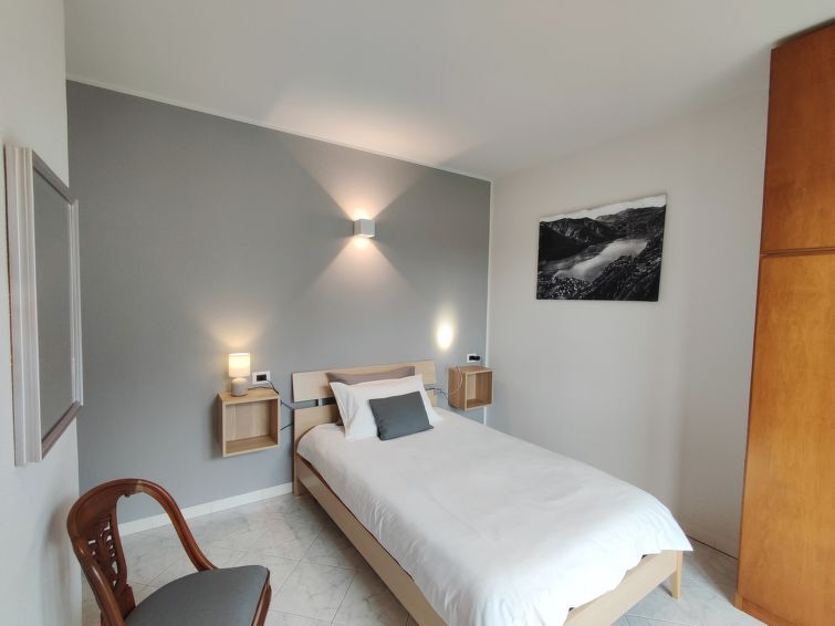 Appartement 3-kamers 90 m2, op de begane grond. Ruim, comfortabel en mooi ingericht: woon-/eetkamer met 1 2-pers divanbed, eettafel en TV (Flatscreen TV). Uitgang naar de tuin, naar het terras. 1 2-pers. kamer. Uitgang naar de tuin, naar het terras. 1 kamer met 1 2-pers bed (140 cm). Uitgang naar het balkon. Keuken (oven, afwasmachine, Gasfornuis, 4 kookpitten (vlammen), broodrooster, waterkoker, magnetron, diepvriezer) met eettafel. Bad/douche/bidet/WC. Gas-verwarming. Verwarming alleen beschikbaar van 15.10. tot 30.04. Natuurstenen vloeren. Balkon, groot terras, tuin 120 m2. Terrasmeubelen, ligstoelen (5). Mooi uitzicht op de bergen. Ter beschikking: strijkijzer, kinderbed tot 2 jaar, haardroger. Internet (Internet (WiFi), gratis). Niet rokers woning. IT013189C2C8TDZPWM