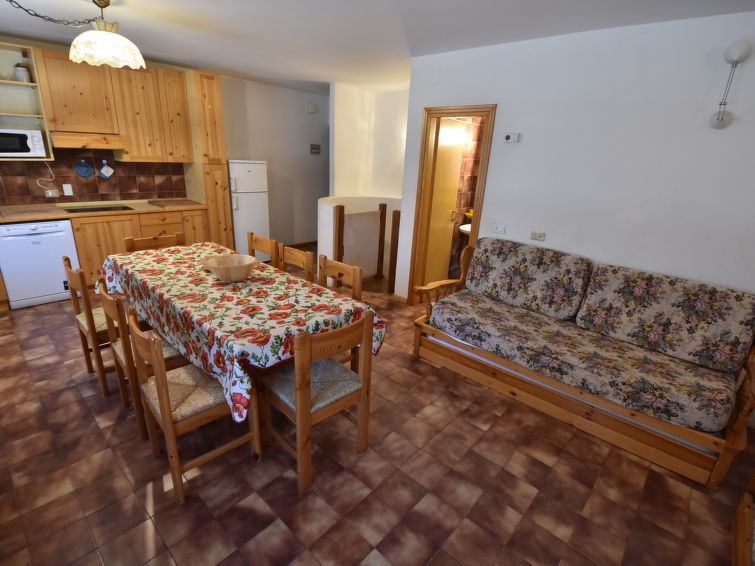 Appartement 4-kamers 90 m2 op 2 verdiepingen, op de begane grond. Doelmatig en comfortabel ingericht: groot woon-/eetkamer met eettafel en TV (Flatscreen TV). Kookhoek (4-pits kookplaat, afwasmachine, magnetron). Bad/bidet/WC. Boiler. Souterrain: 1 2-pers. kamer. 1 2-pers. kamer met 1 x 2 stapelbedden. 1 kamer met 1 x 2 stapelbedden. Douche/bidet/WC, aparte WC. Boiler. Uitzicht op de bergen en het dal. Ter beschikking: wasmachine, haardroger. Internet (WiFi, gratis). Garage. Geschikt voor families. Niet rokers woning. Maximaal 1 huisdier/hond toegestaan. Brandblusser. IT022039C26KN2RBQ3