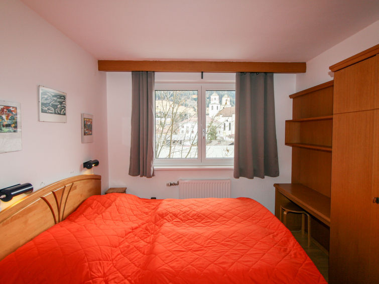 Appartement 2-kamers 27 m2 op de 1e verdieping. Doelmatig en gezellig ingericht: woon-/slaapkamer met 1 divanbed, eettafel en Sat-TV. 1 2-pers. kamer met douche/WC. Kookhoek (2-pits kookplaat, oven, broodrooster, waterkoker, grill, elektrische koffiemachine, combimagnetron). Terras. Terrasmeubelen. Mooi uitzicht op de bergen en de plaats. Ter beschikking: haardroger. Internet (WiFi, gratis). Maximaal 1 huisdier/hond toegestaan. Rookmelders.