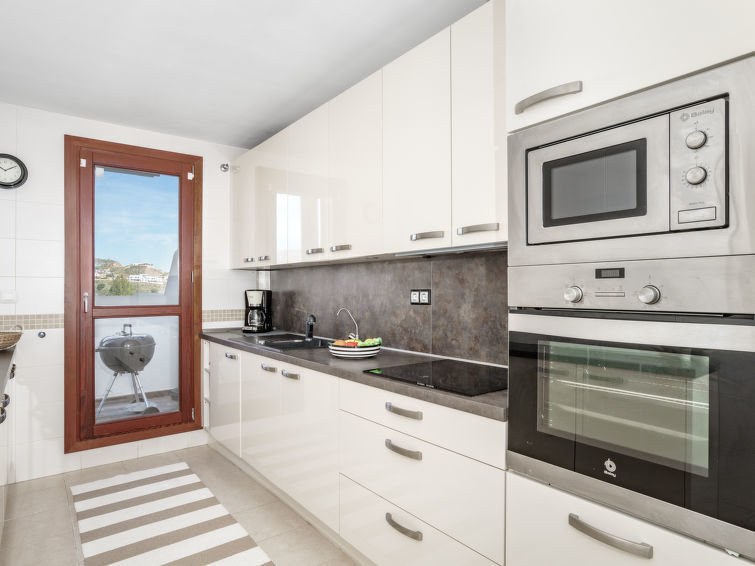 La cala de Mijas: Moderne rijtjeshuis "Navigolf", bouwjaar 2005. Aan de rand van de plaats, 1 km van het centrum van La cala de Mijas, 1.5 km van zee, 1.5 km van het strand, aan de golfbaan. Voor medegebruik: tuin met gazon, openluchtzwembad (seizoensgebonden beschikbaarheid: 01.Jan. - 31.Dec.). Douche/WC bij het zwembad, kinderzwembad, kinderspeelplaats, parkeerplaats bij het huis. Winkel 1 km, supermarkt 1 km, restaurant 800 m, café 1 km, bushalte "La Cala de Mijas" 1 km, zandstrand 1.5 km. Golfterrein (9 holes) 200 m. Geschikt voor families. Het objekt is geschikt voor 4 volwassenen + 4 kinderen groepen jongeren uitsluitend op aanvraag. De omgeving is gevoelig voor geluidsoverlast. Gelieve geen lawaai te maken en de rust te bewaren.